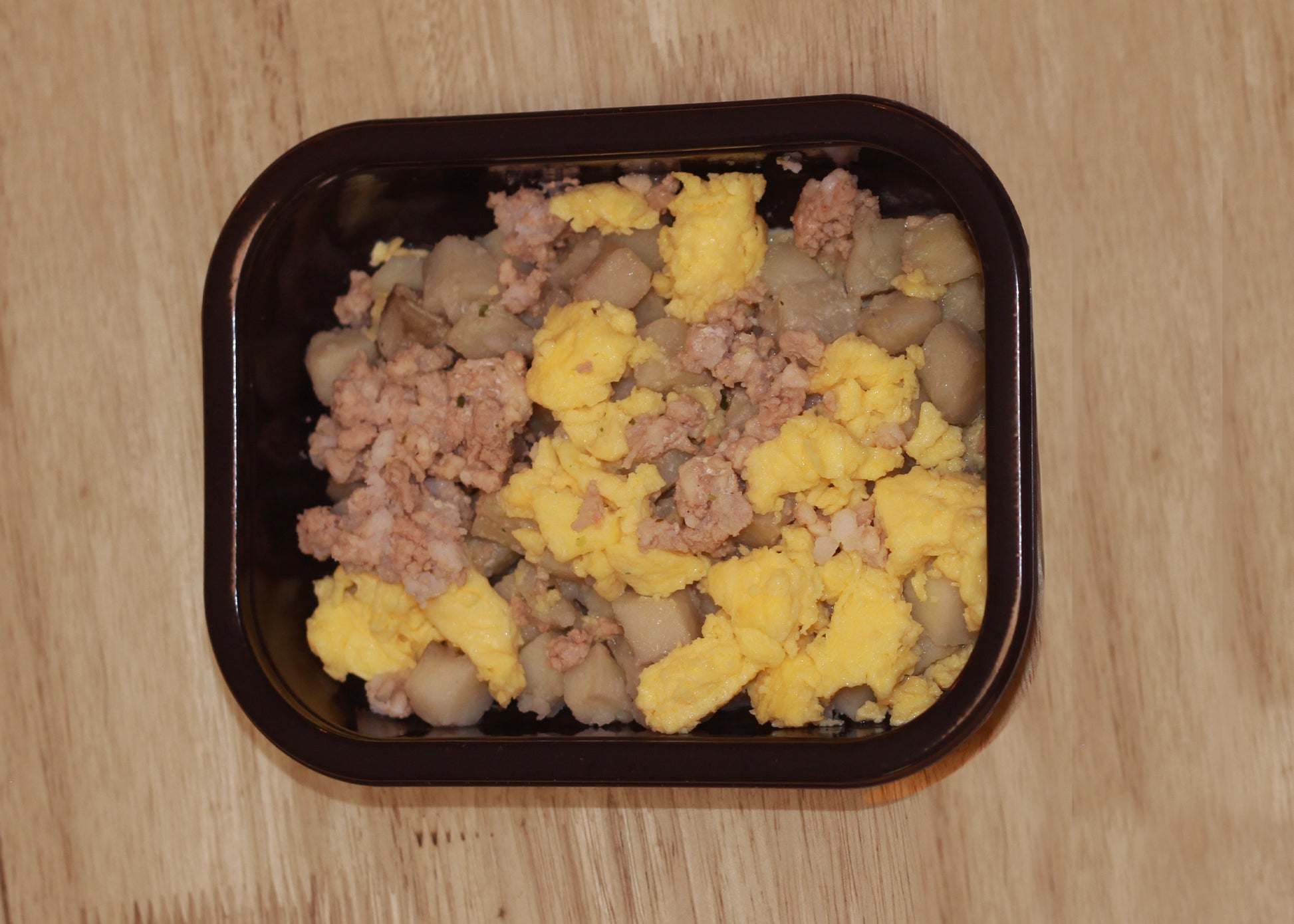 Ingredients: Potatoes, Eggs, Pork, Secret Sauce (Water, Guar Gum, Minerals, Vitamins, Herbs, and Spices), Olive Oil.