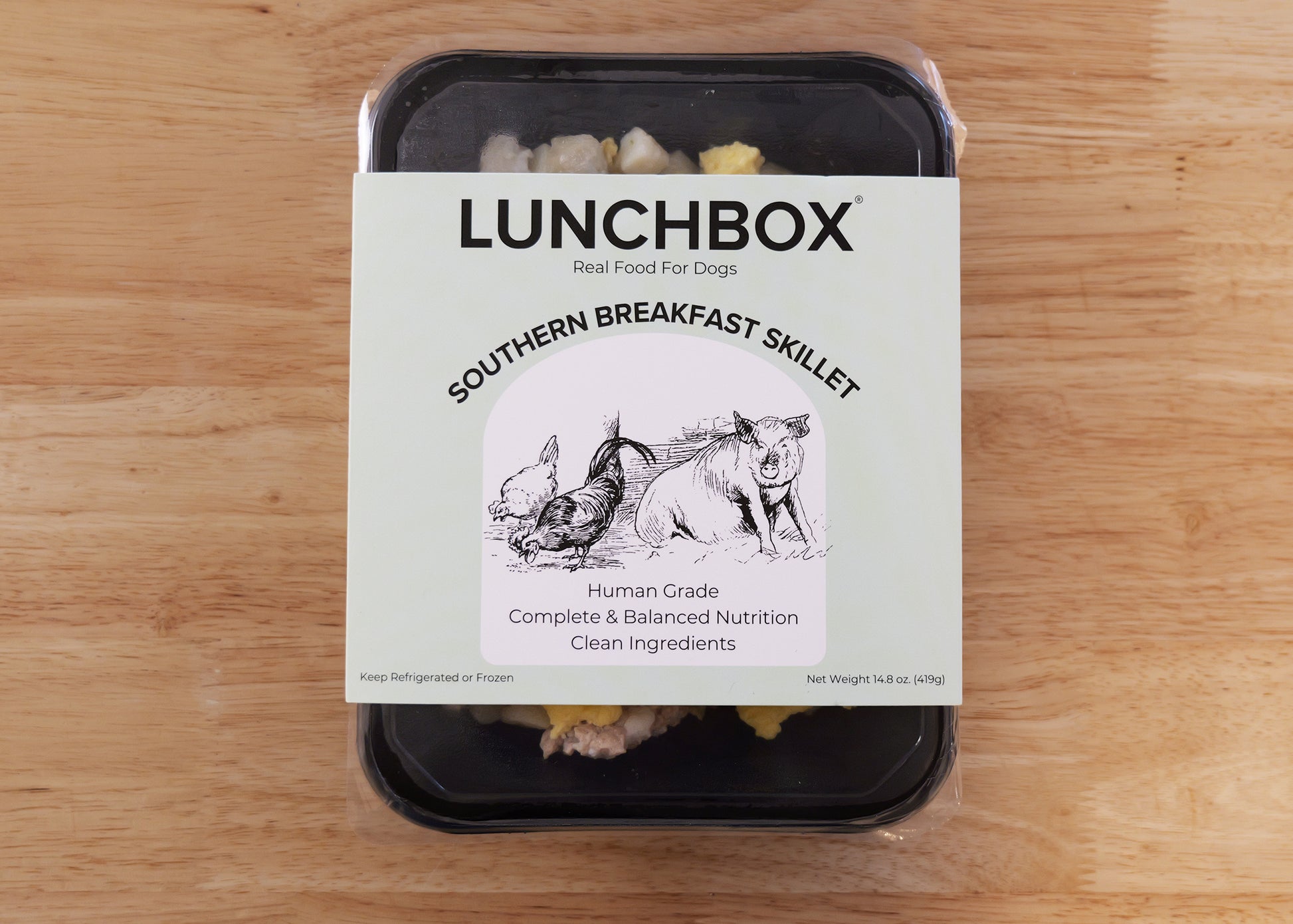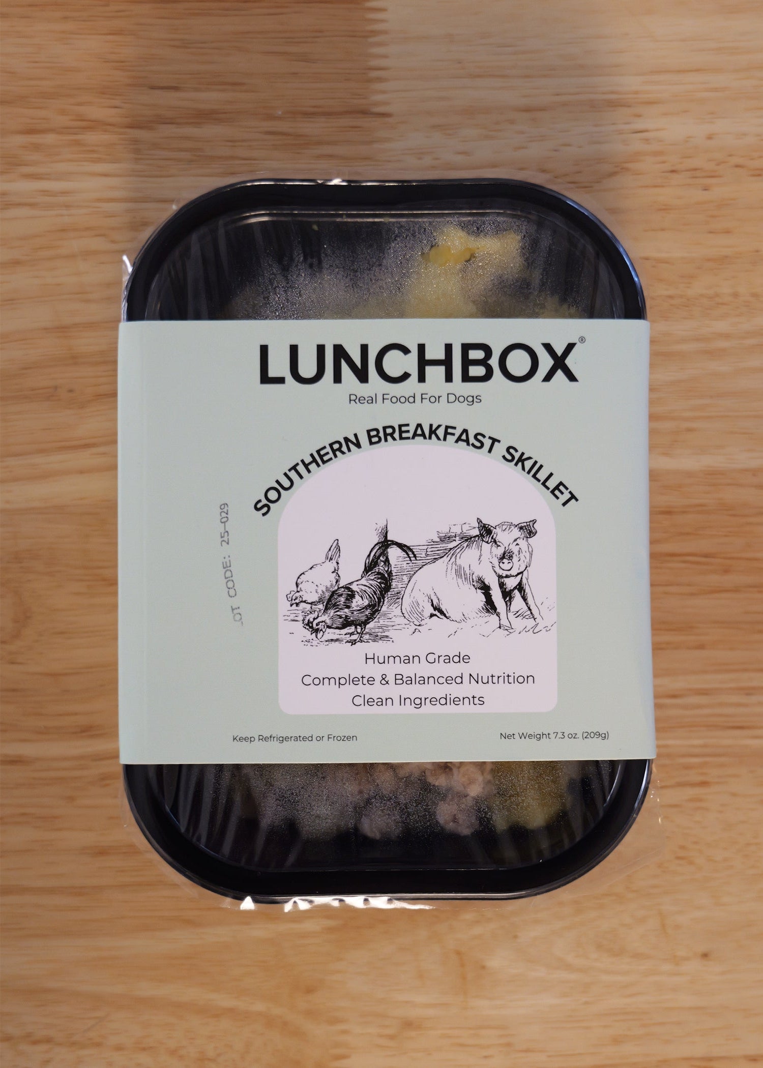 LUNCHBOX® Southern Breakfast Skillet is a delicious, human-grade meal that brings the heart of the South right to your pup’s bowl. Featuring savory pork, fluffy eggs, and crispy potatoes, it’s comfort food that fuels your dog’s day with flavors they’ll love. Balanced with our signature "secret sauce" of essential vitamins, minerals, and herbs, it’s a hearty start to any morning.